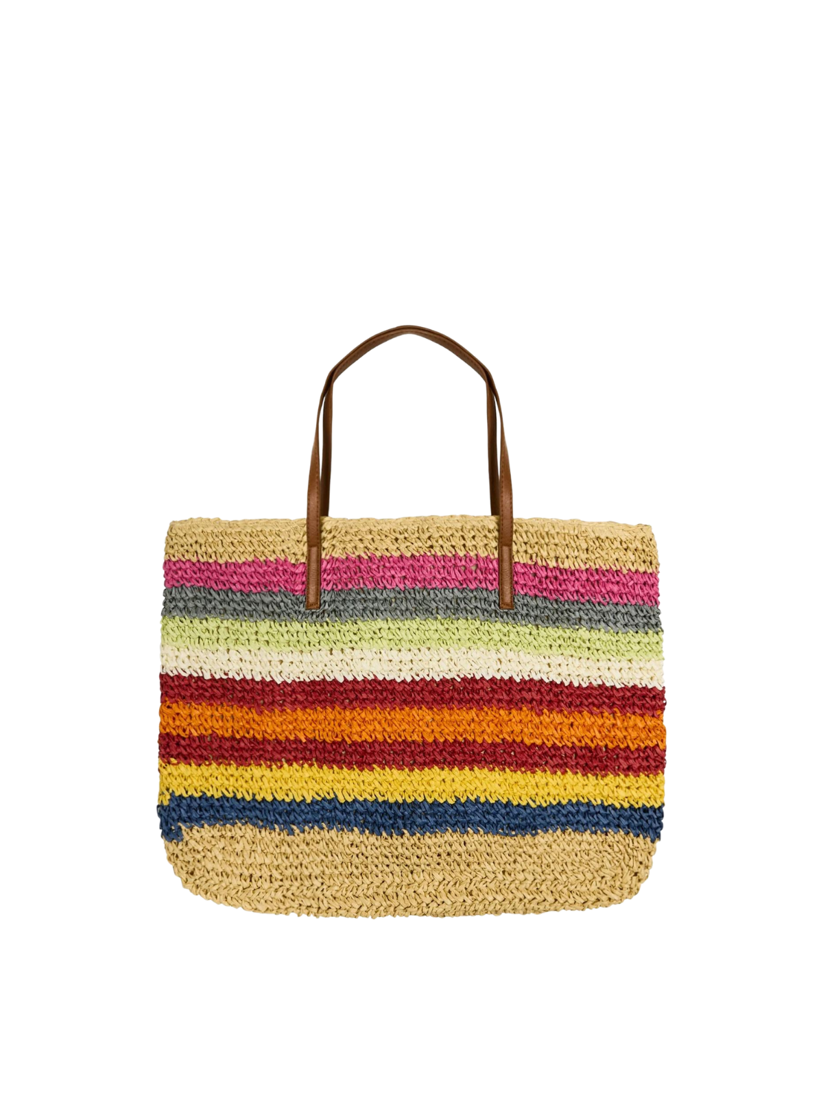 Crochet multicolored striped straw bag