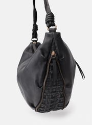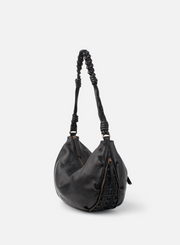 Beautiful hand-braided gusset and shoulder strap. Zipper closure, adjustable and removable crossbody strap, external and internal pockets, and cotton lining.