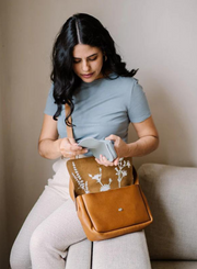 Like in every other Keecie leather bag, there is a silkscreen print on the inside of this bag. Our prints are often inspired by nature, and that’s the case in the Picking Flowers too. The wildflowers remind us of a lovely summer’s day, walking through fields of buttercups, poppies and cornflowers. Isn’t it wonderful to be able to daydream for a moment every time you open your bag?