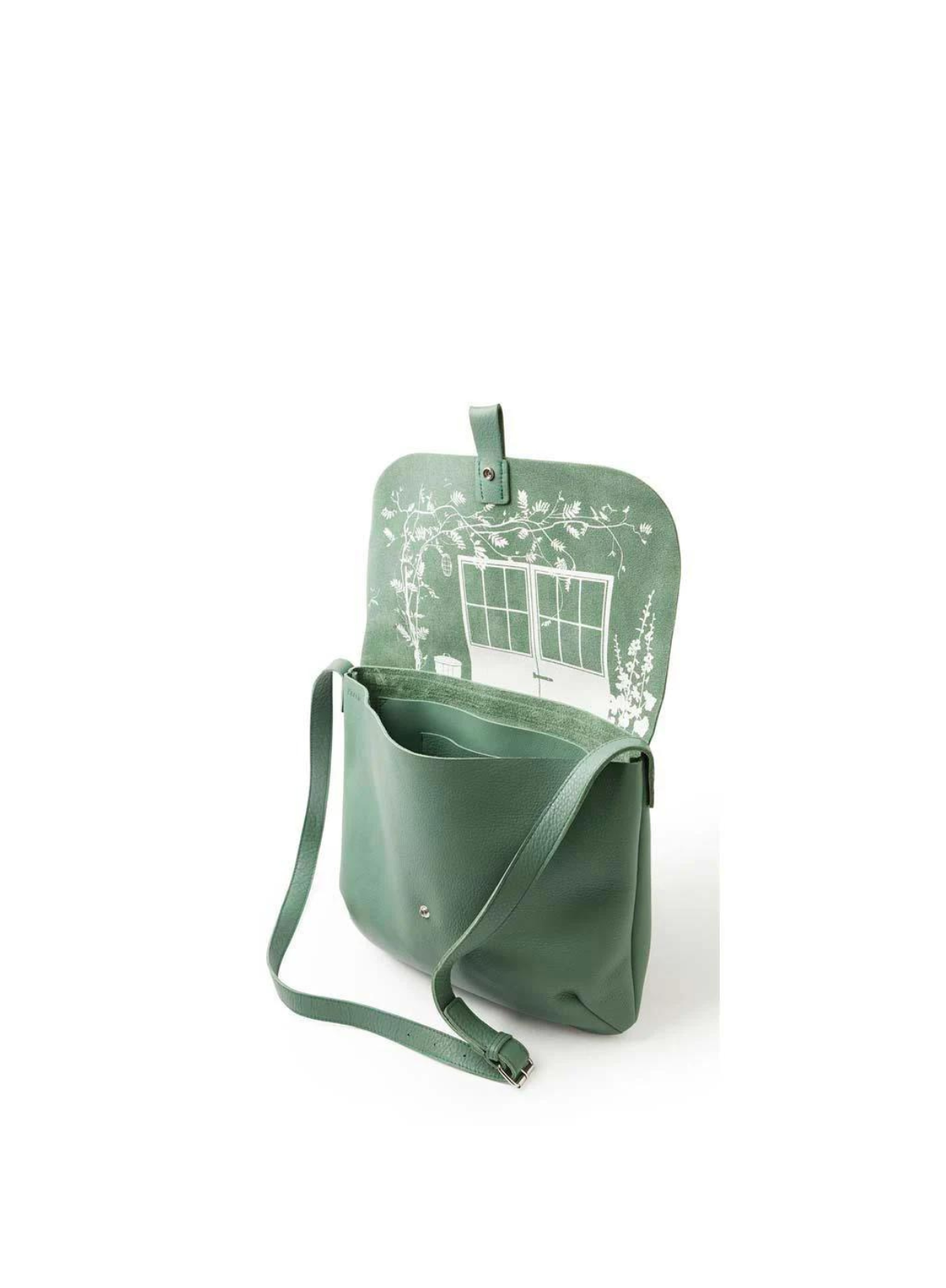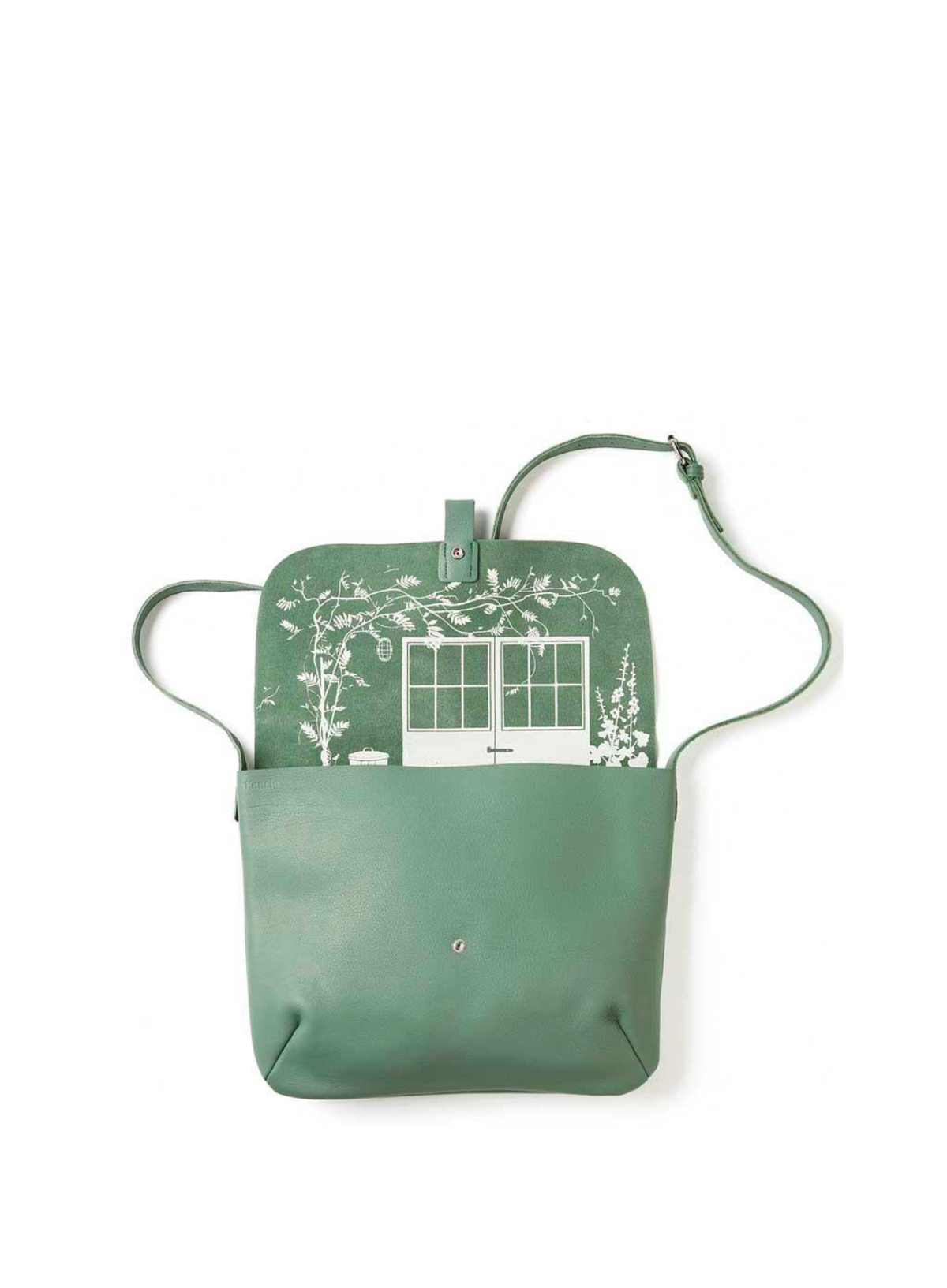 They’ve depicted their dream workplace on the inside of this bag. Wouldn’t it be wonderful to step out into the back garden in the morning, holding a cup of coffee, to get down to work in this rustic garden house?