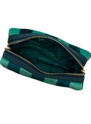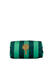 A gorgeous teal stripe velvet makeup bag, with a detachable Palm Tree brooch.