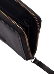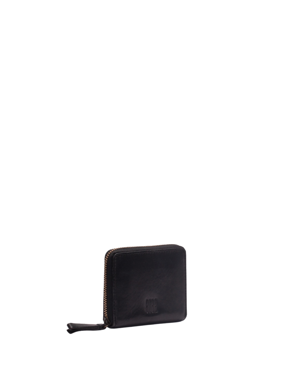 Washed, and vegetable-tanned cowhide leather small wallet. Zip closure, and cards compartments.