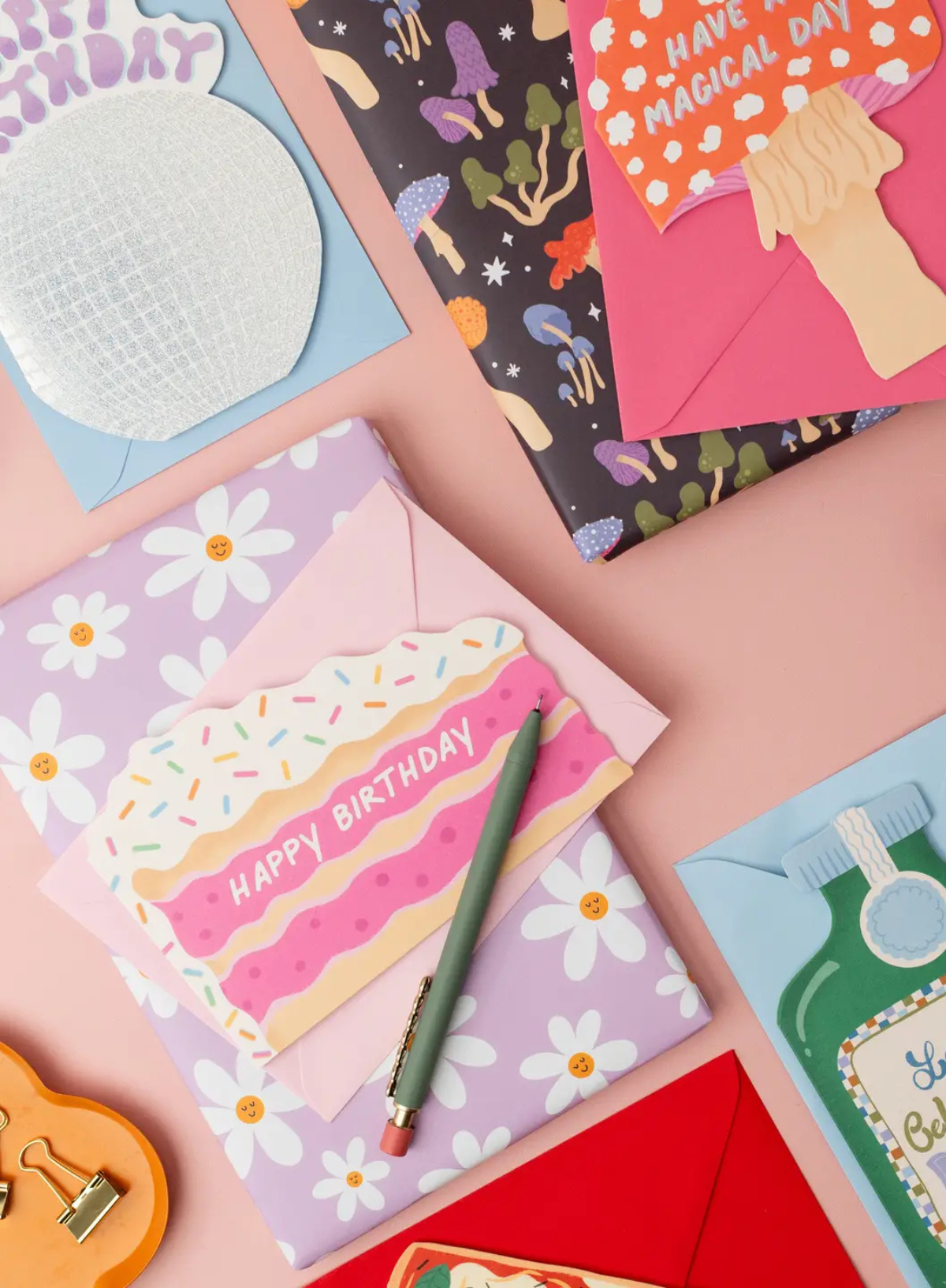 The unique die-cut shape adds flair to your greetings