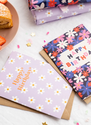 Discover a retro twist on the floral birthday card with this patterned design from Tikkled Pink.