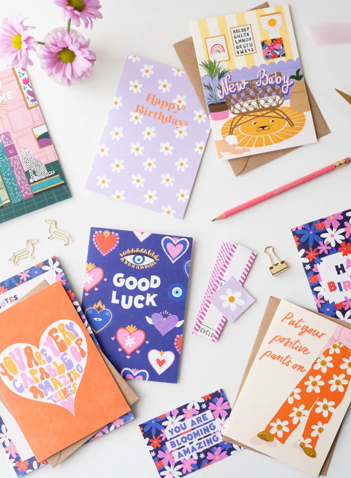 Share some flower power and add a groovy handwritten message to the blank inside to celebrate with a birthday card for all ages.