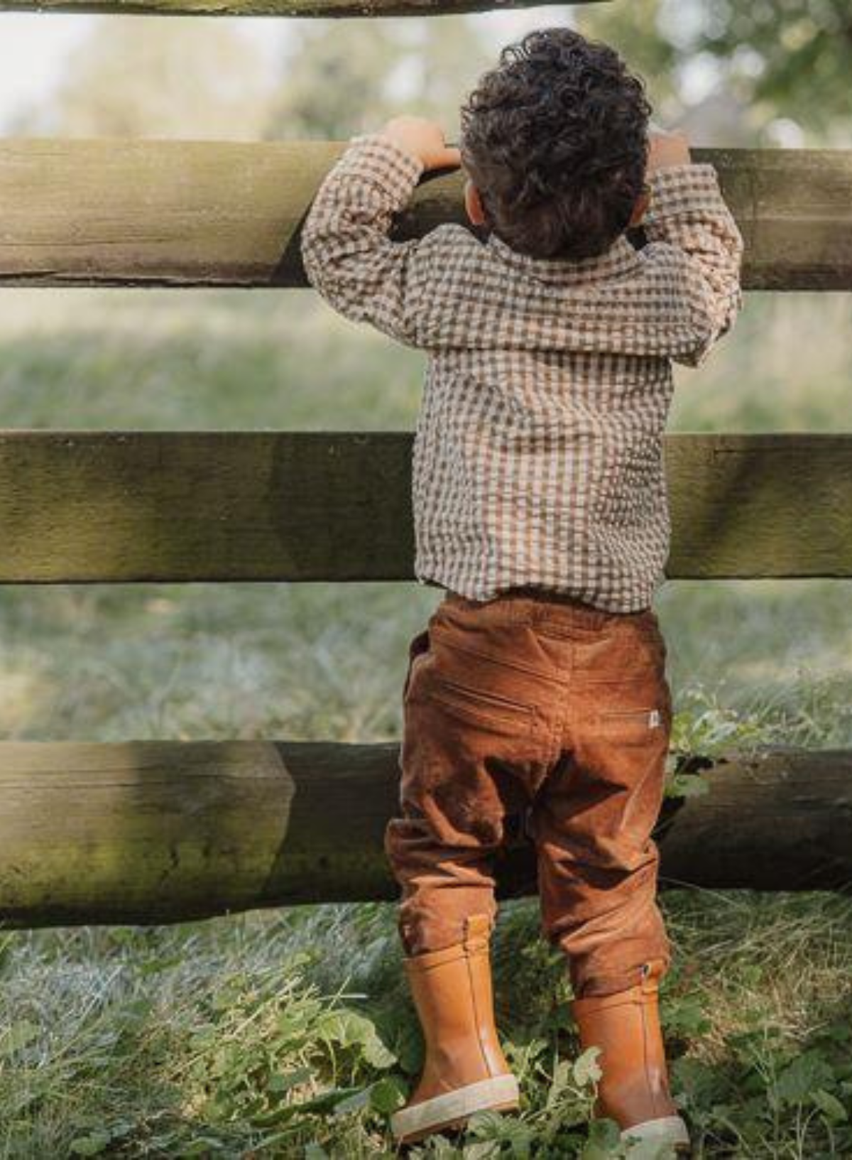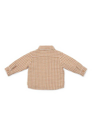 This cool long-sleeved shirt features a beautiful brown and white check pattern. The ribbed-textured woven fabric is made of organic cotton and closes with a row of wood-look buttons. Perfect for both everyday wear and special occasions, button up or leave open over a t-shirt. Mix and match with the other items from the Farm collection for even more different looks.