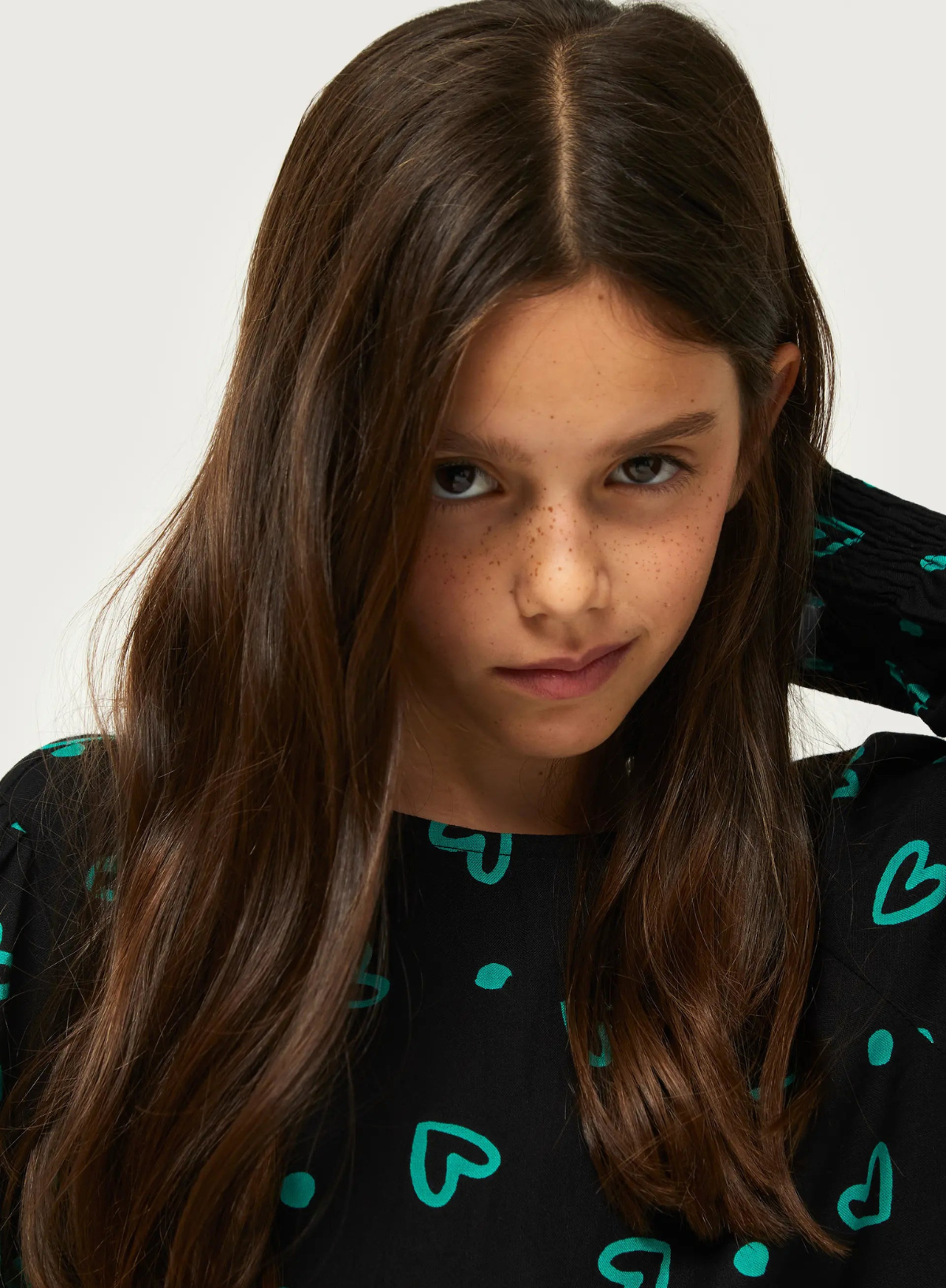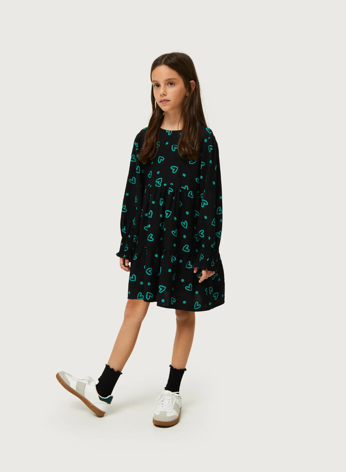 Heart Print Dress in Black/Heart Print from Compañia Fantastica Mini