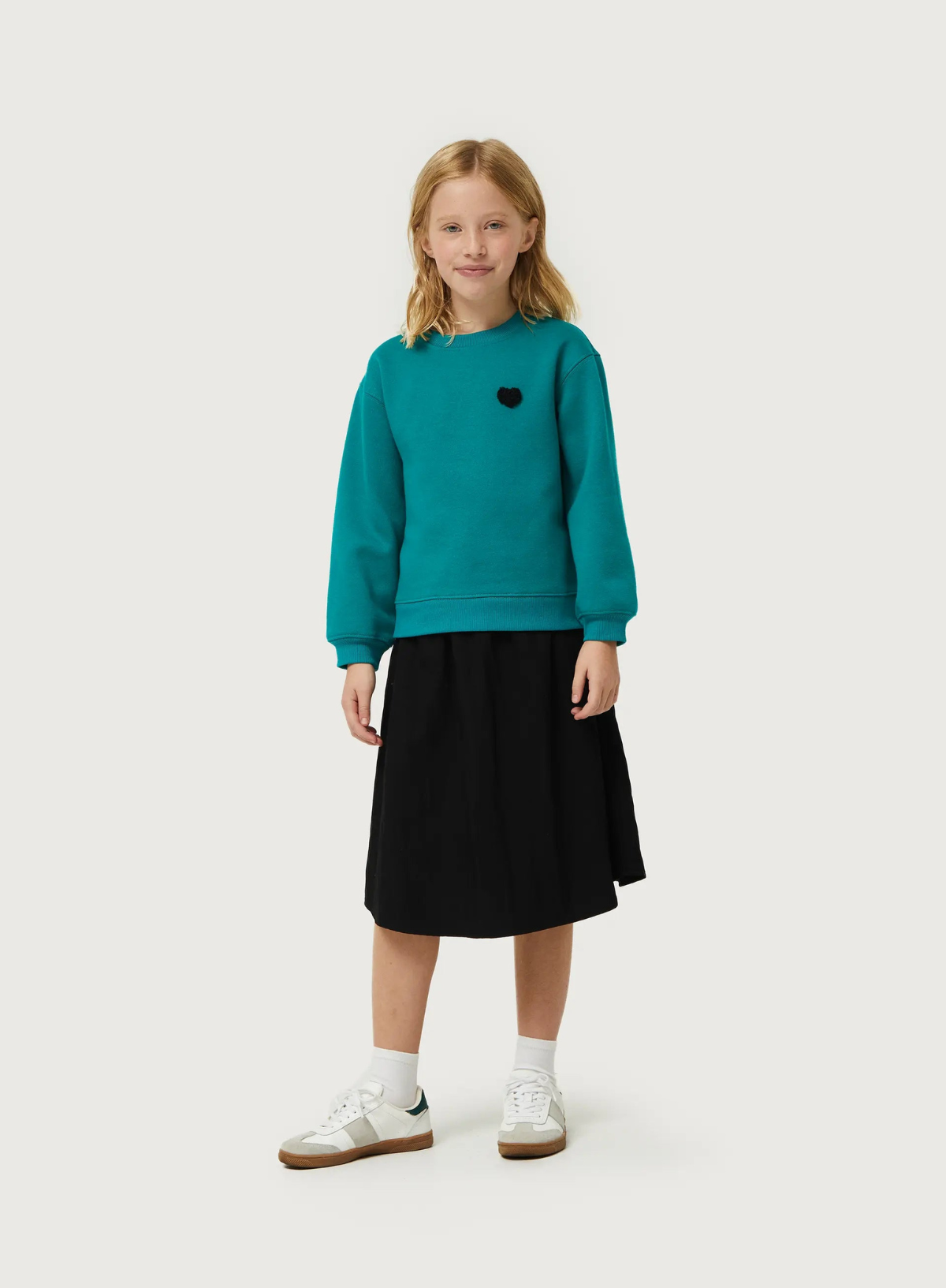 Patch detail in black towel fabric in the shape of a heart.