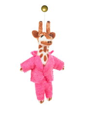Greg the Giraffe is looking sharp in his hot pink suit, what a style icon! Greg has been handcrafted using needle felting techniques. His suit trousers and jacket are made from wet felting techniques and are handstitched onto his body. Every material used to bring Greg to life are biodegradable and sustainable.