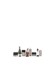 This sweet decoration features charming houses and a cheerful Santa, bringing a cozy holiday spirit to your home.