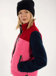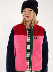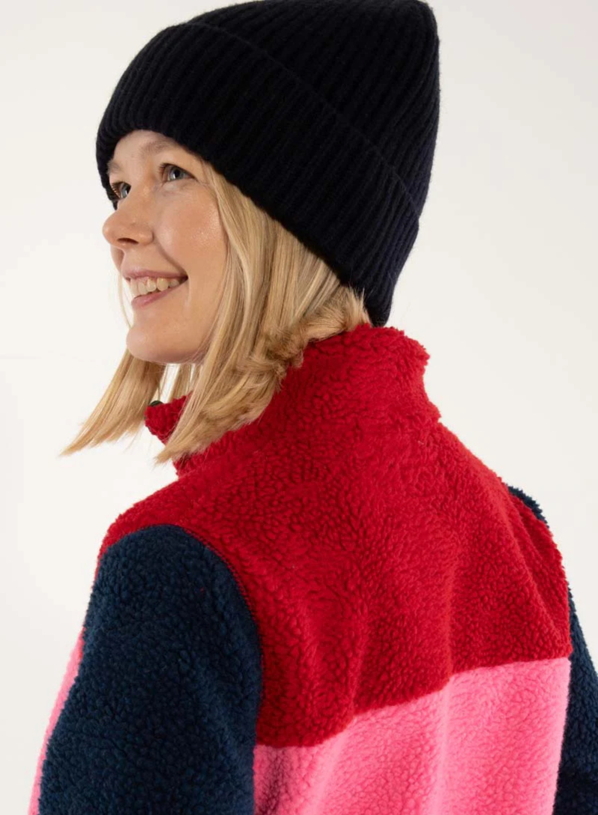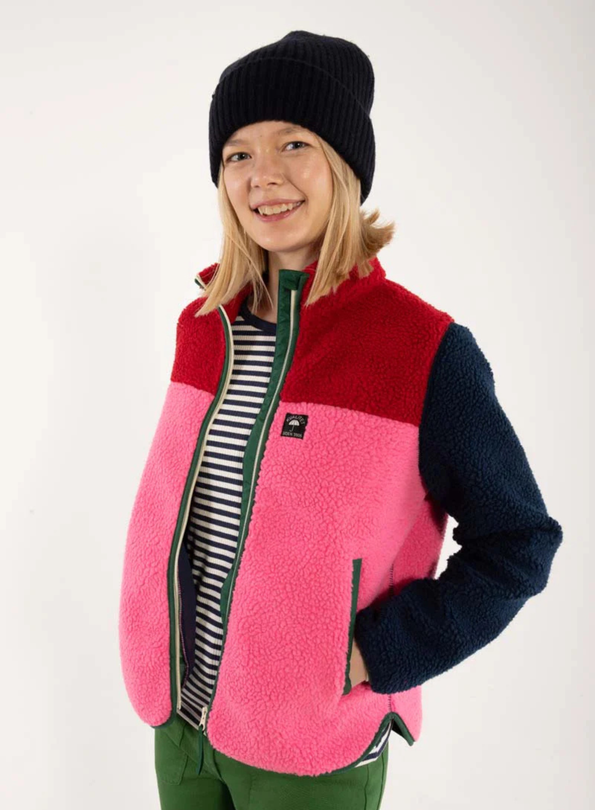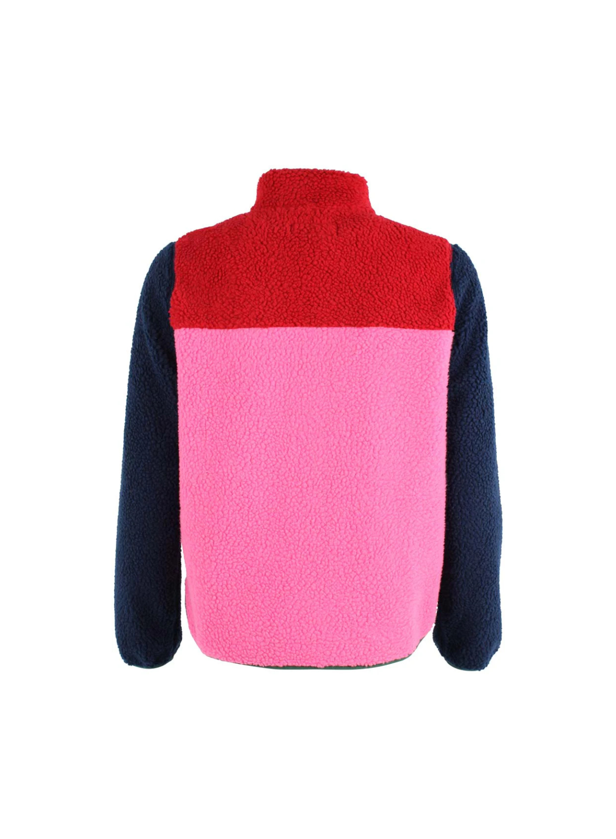 Danebirk Zip Up Fleece in Red/Navy/Spicy Pink/Pine from Danefae