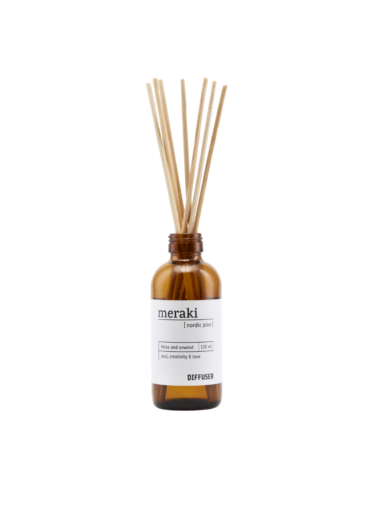 Meraki Nordic Pine diffuser creates a fragrant atmosphere in your home. The diffuser consists of 7 sticks that leave a mild and sensual scent of Nordic Pine, which is a scent that fills the air with a welcoming and fresh whiff. Use the diffuser in your living room, hallway, and bathroom or wherever you want a refreshing scent.