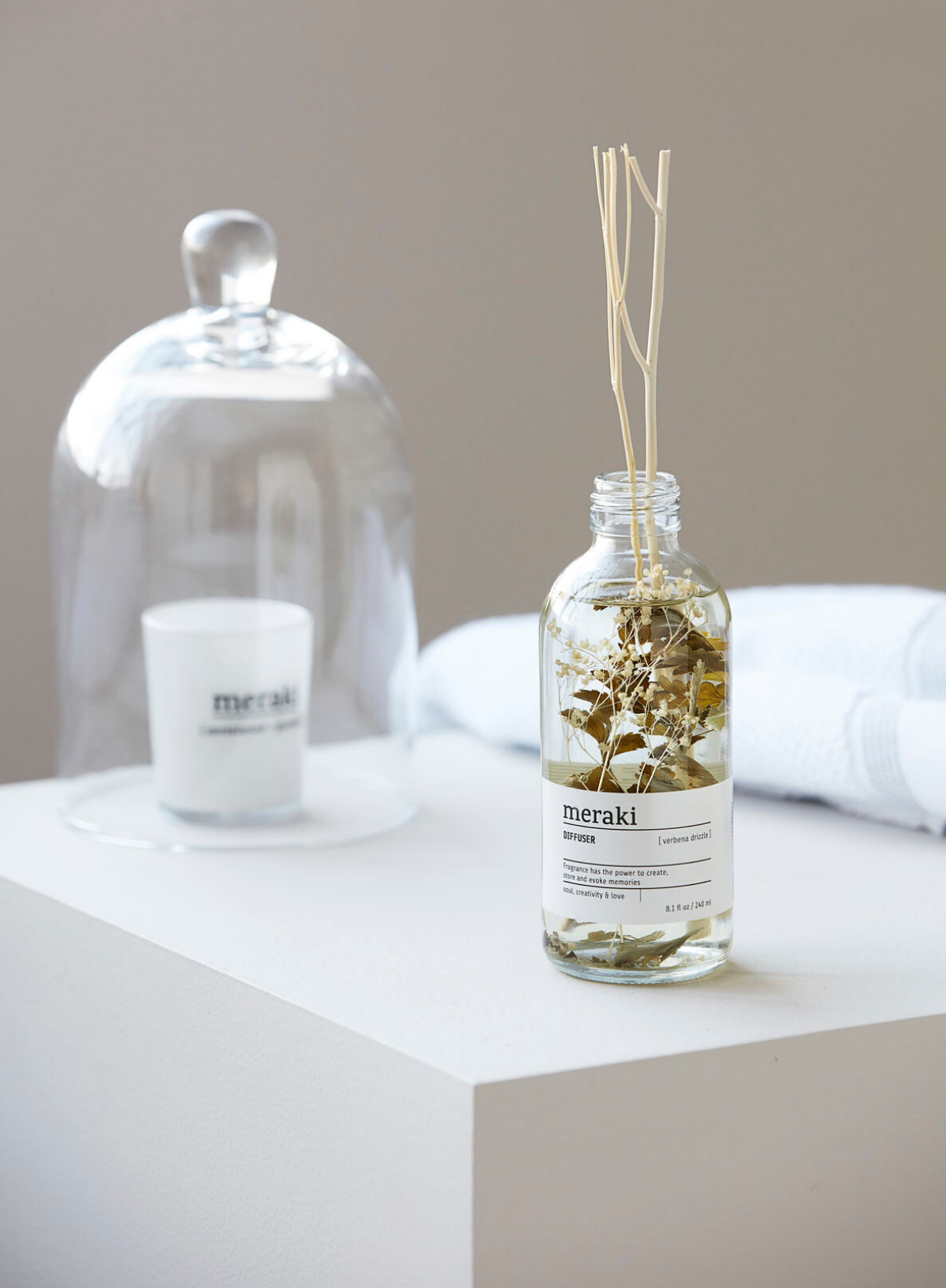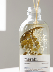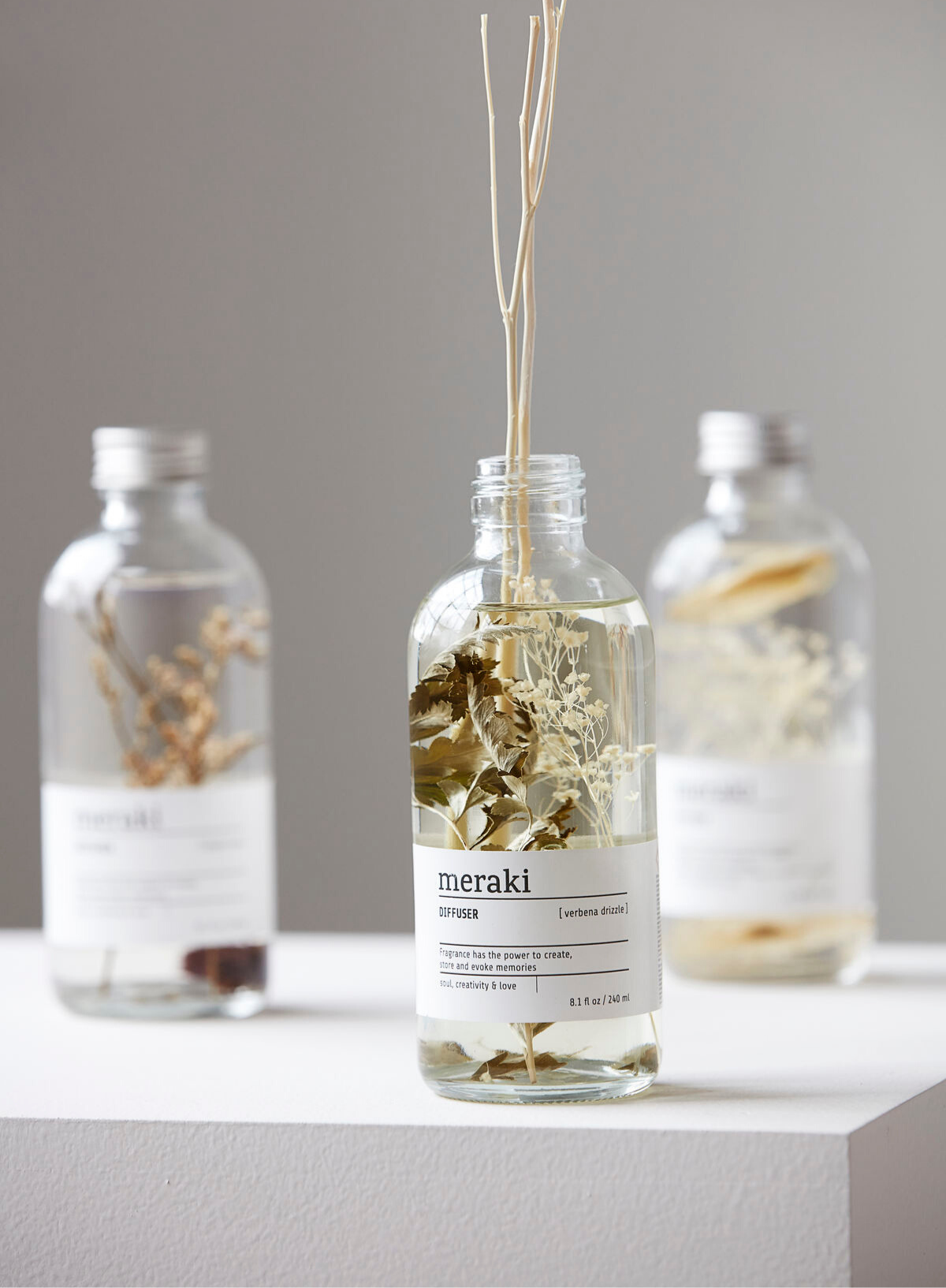 Meraki Verbena Drizzle diffuser creates a fragrant atmosphere in your home. The diffuser consists of 7 sticks that leave a mild and sensual scent of verbena, which is a scent that fills the air with a welcoming and fresh whiff. Use the diffuser in your living room, hallway, bathroom or wherever you want a refreshing scent.