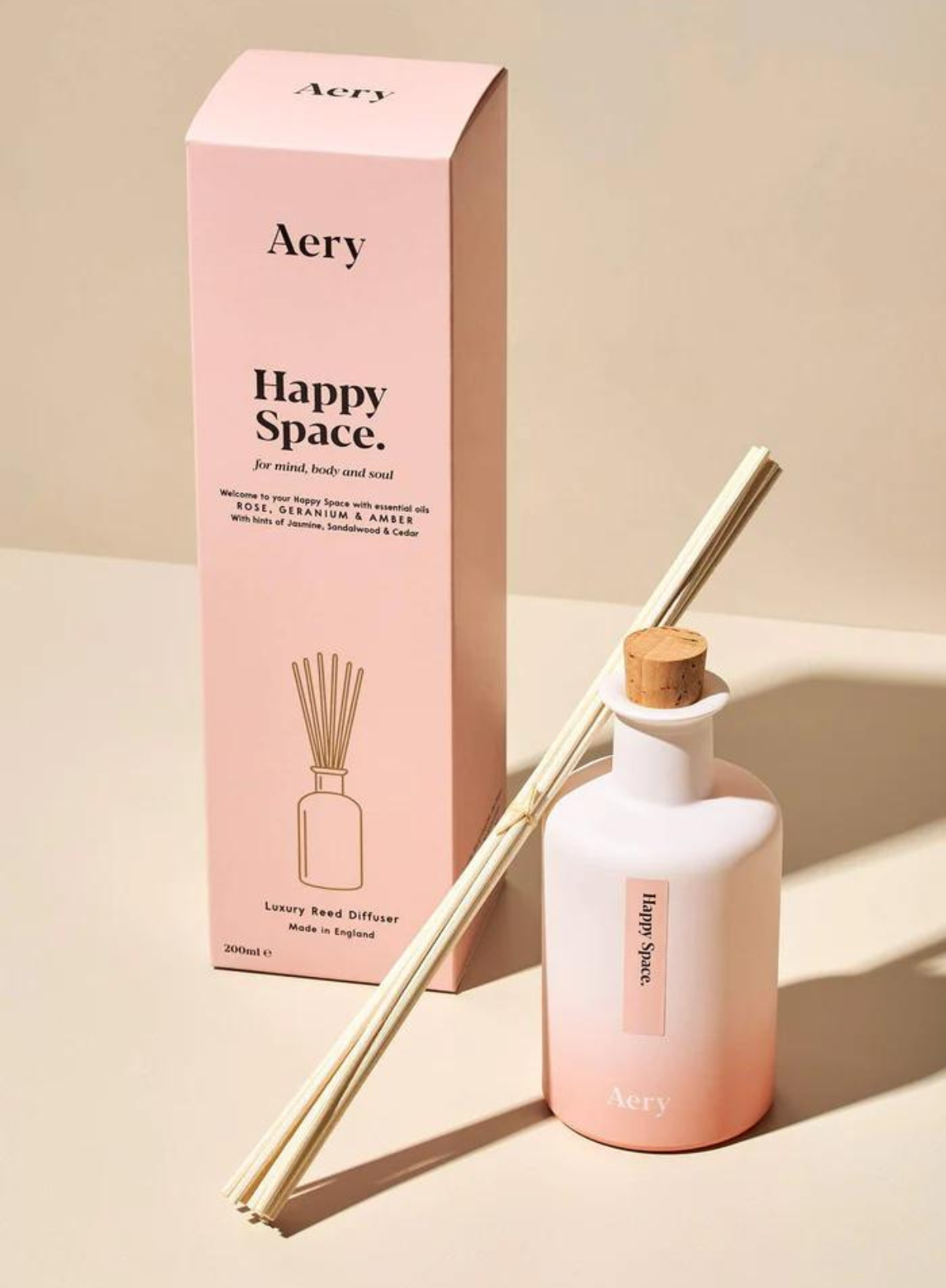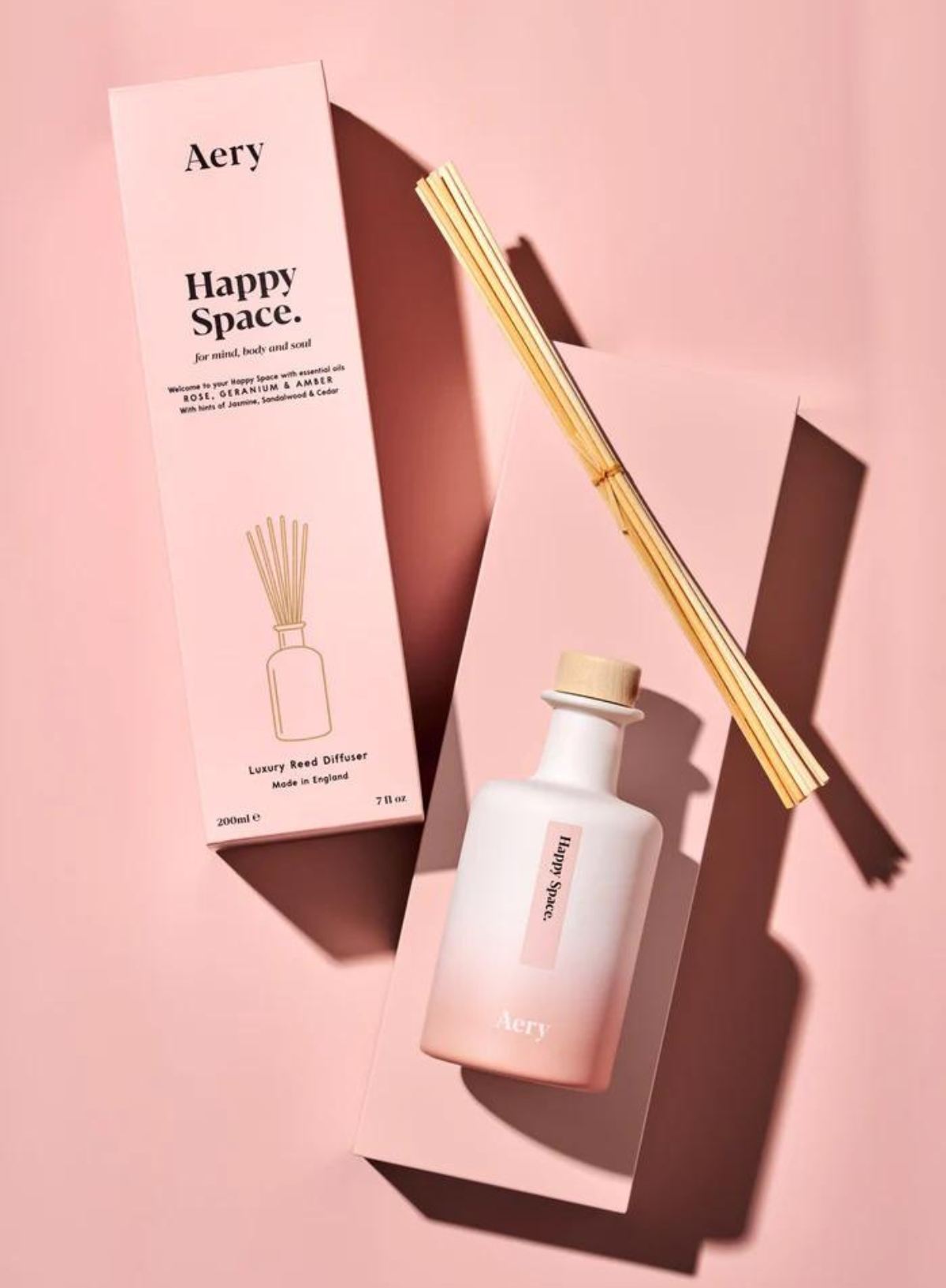 Aery Living Happy Space Reed Diffuser - Rose Geranium & Amber