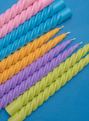 Suited perfectly to gift or for everyday entertaining, these fun and trendy twisted taper candles are add flickering light and a pop of color to any mantel, dinner table, or celebration!