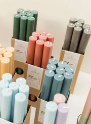 The Candle Long is available in many different colours and burns for 18-20 hours.