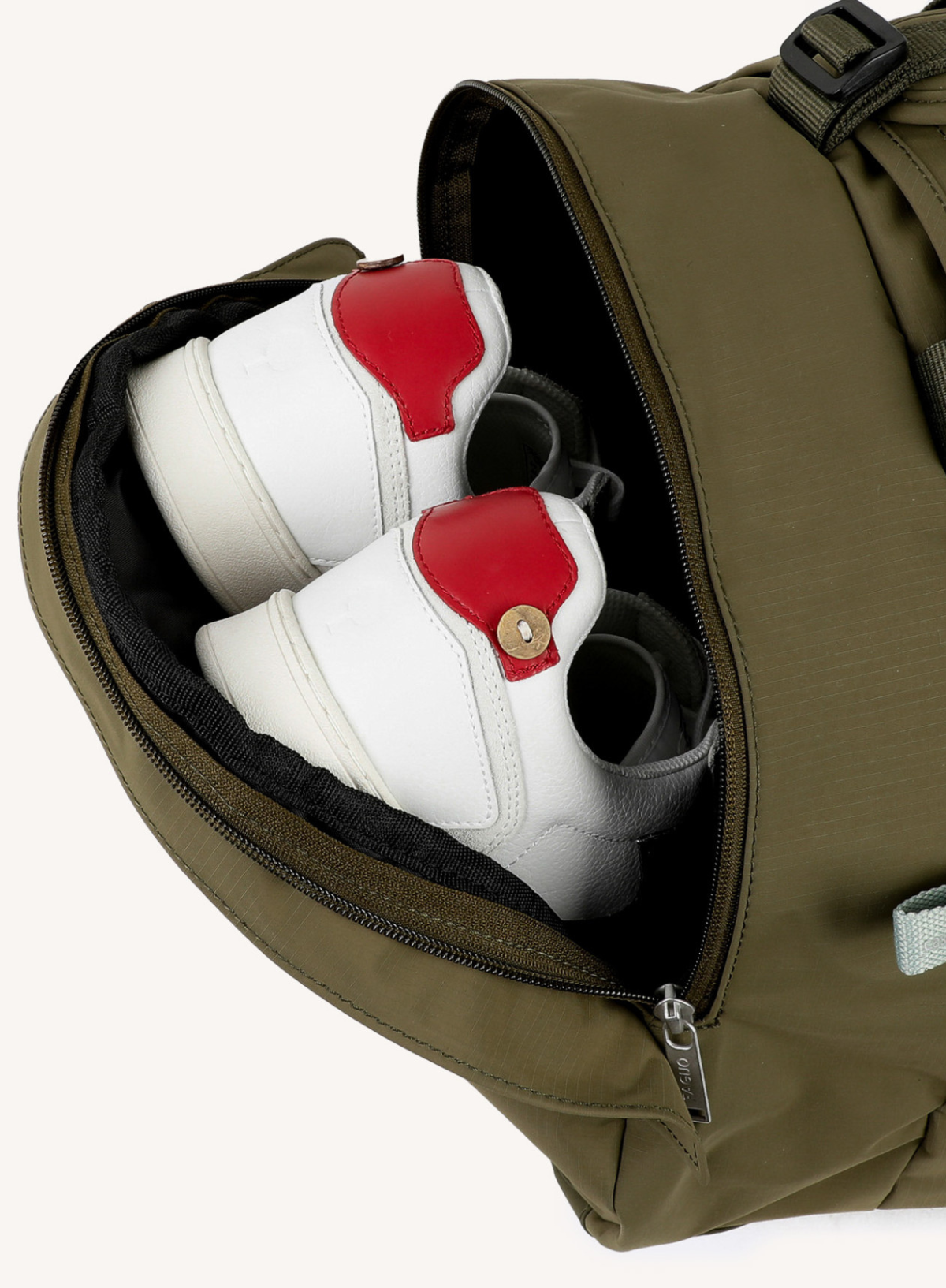 It's ideal for organised storage thanks to its wide opening, interior zippered mesh pocket, and externally accessible shoe compartment.