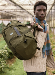 The BIG DUFFLE is a functional travel bag that can be carried as a backpack or by hand. Its removable and adjustable shoulder straps are padded and breathable for comfort.