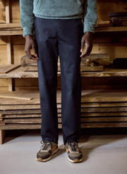 The Brix Regular Woven Pants in Navy from Faguo offer a timeless style with their straight cut that gently follows the leg’s natural shape without tapering.