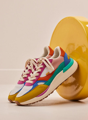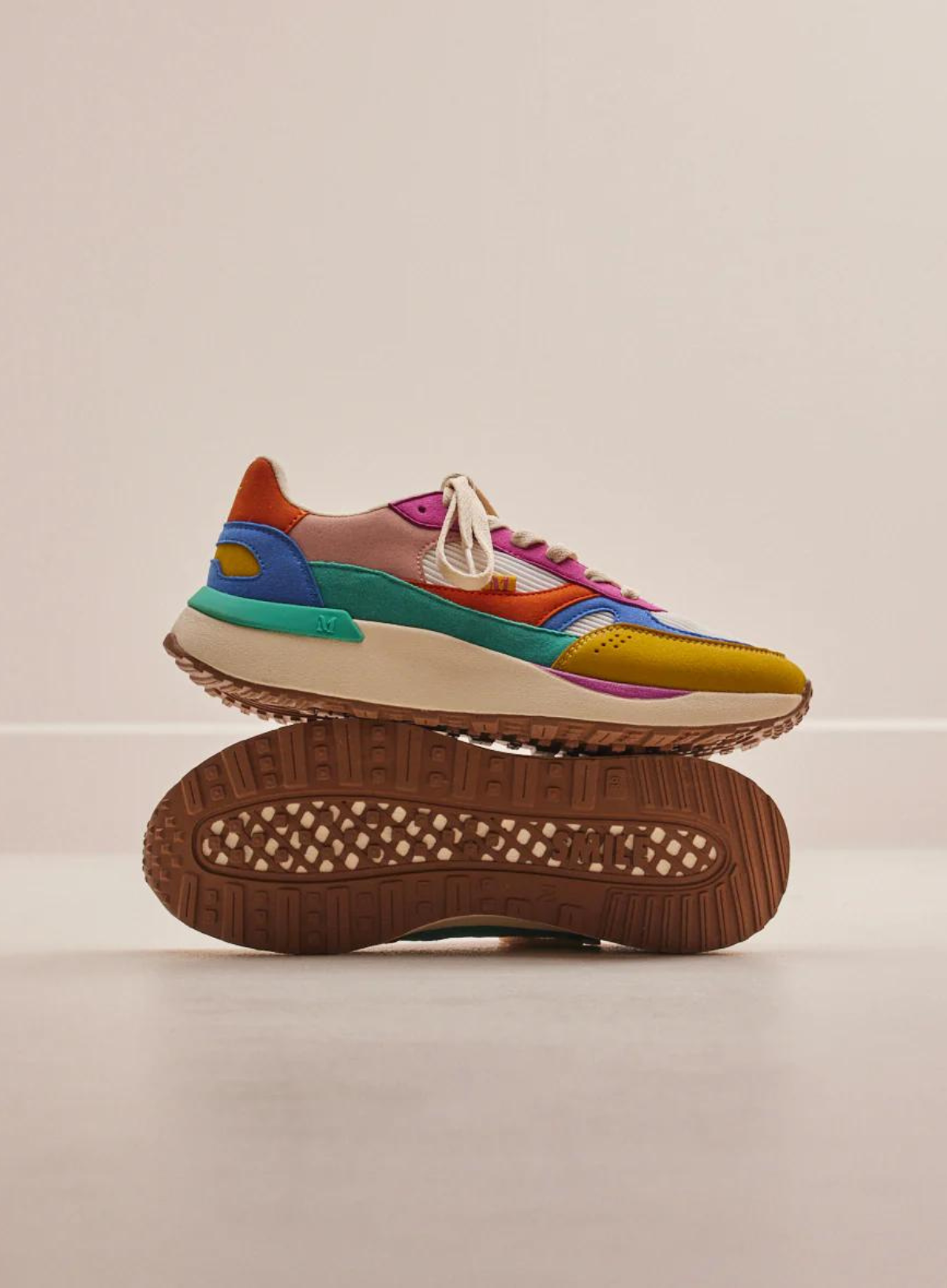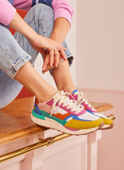 Baskets Running Anaelle in Suede Yellow, Bleu & Fuchsia from M.Moustache