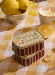 4.5 oz. Two-Wick Tin Candles | With a faux pull-tab for added character inspired by sardine tins, these tin candles with hand illustrated artwork offer a cozy glow with its two wicks, and a comforting scent.