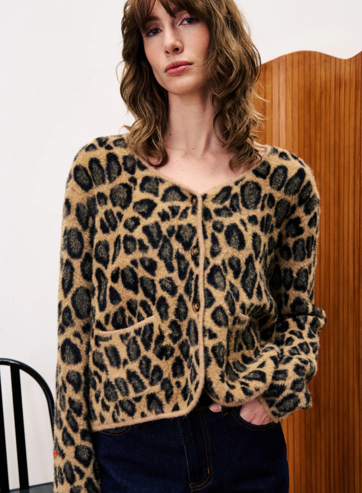 The Begonia Cardigan in Leopard Print from FRNCH combines a soft mohair effect knit with an all-over leopard print for eye-catching texture and style.