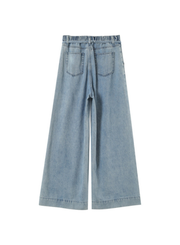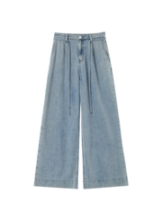 Made from washed denim fabric, the POMPON oversized jeans create a relaxed, urban look. The model features a mid-rise waist, front pleats, pockets, and belt loops. The POMPON baggy jeans have a zip closure accented with a G&M monogrammed button. This piece joins their Un Brin de Vert natural fiber range.
