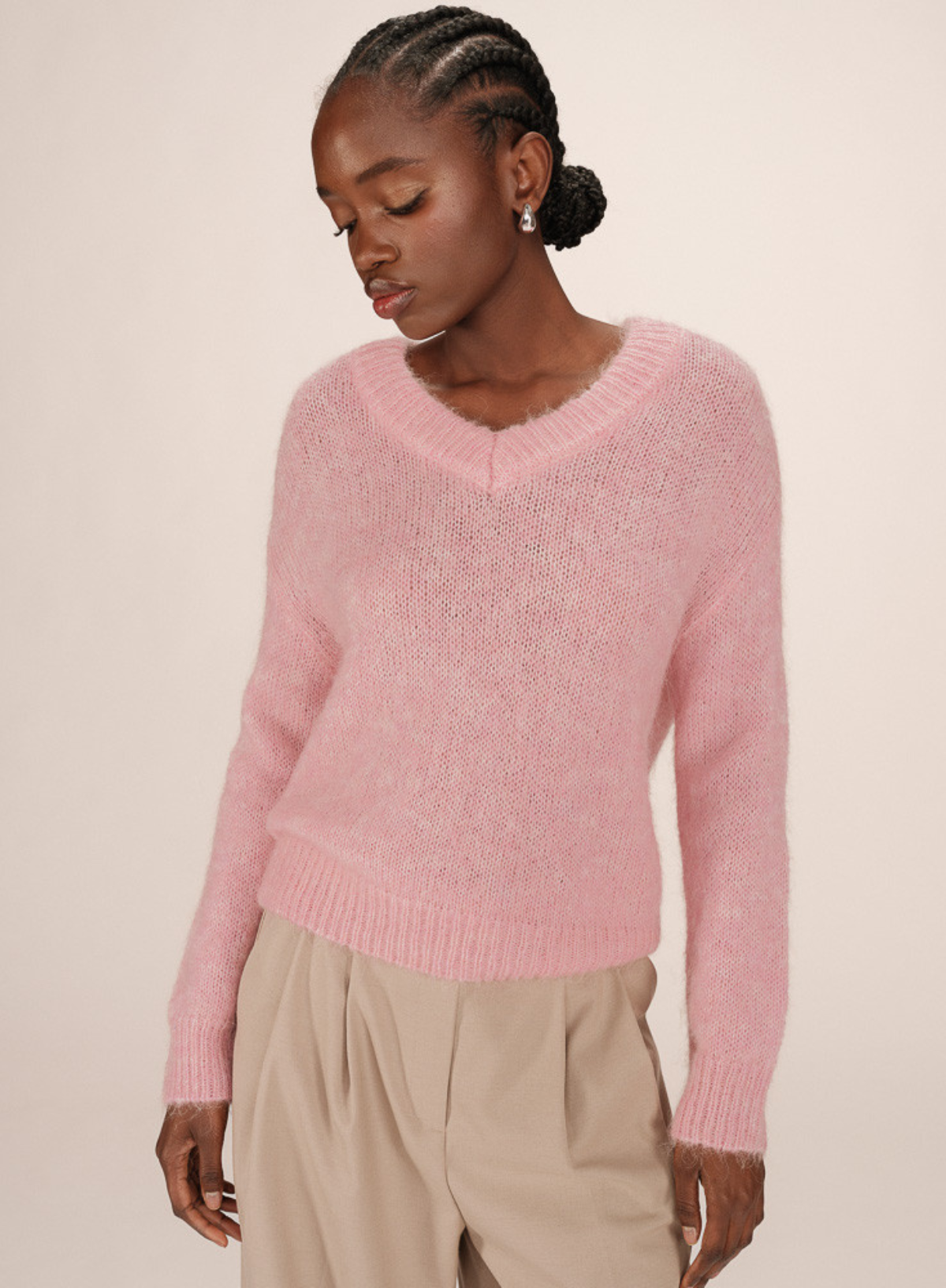 Comfortable and warm, the SABADO jersey is made with a woven yarn of alpaca wool. A casual and elegant silhouette appears on a large and comfortable courtyard. The model features a V-neck skirt with tubular trim that brings a modern and feminine look. With its clean and minimalist lines, the SABADO wool jersey fits into your wardrobe.