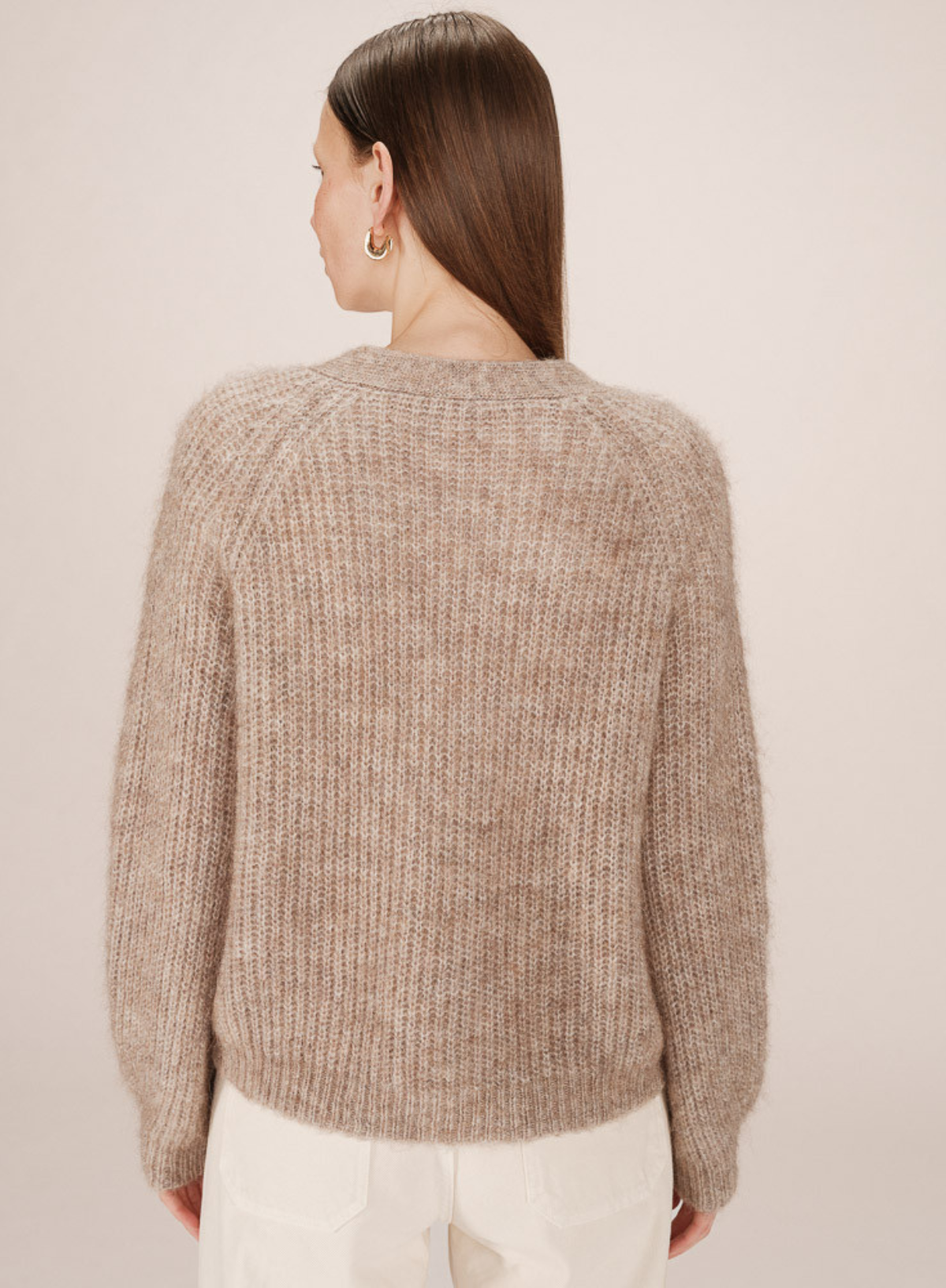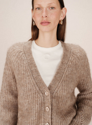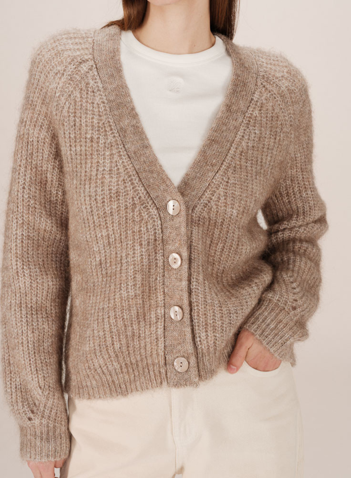 Knitted in a wool and alpaca blend yarn, the SALUDA long-sleeved cardigan is a soft and warm piece. The moss rib knit and oversized fit give it a relaxed feel, while the V-neckline and front button fastening add a touch of sophistication. The SALUDA wool cardigan is a seasonal essential.