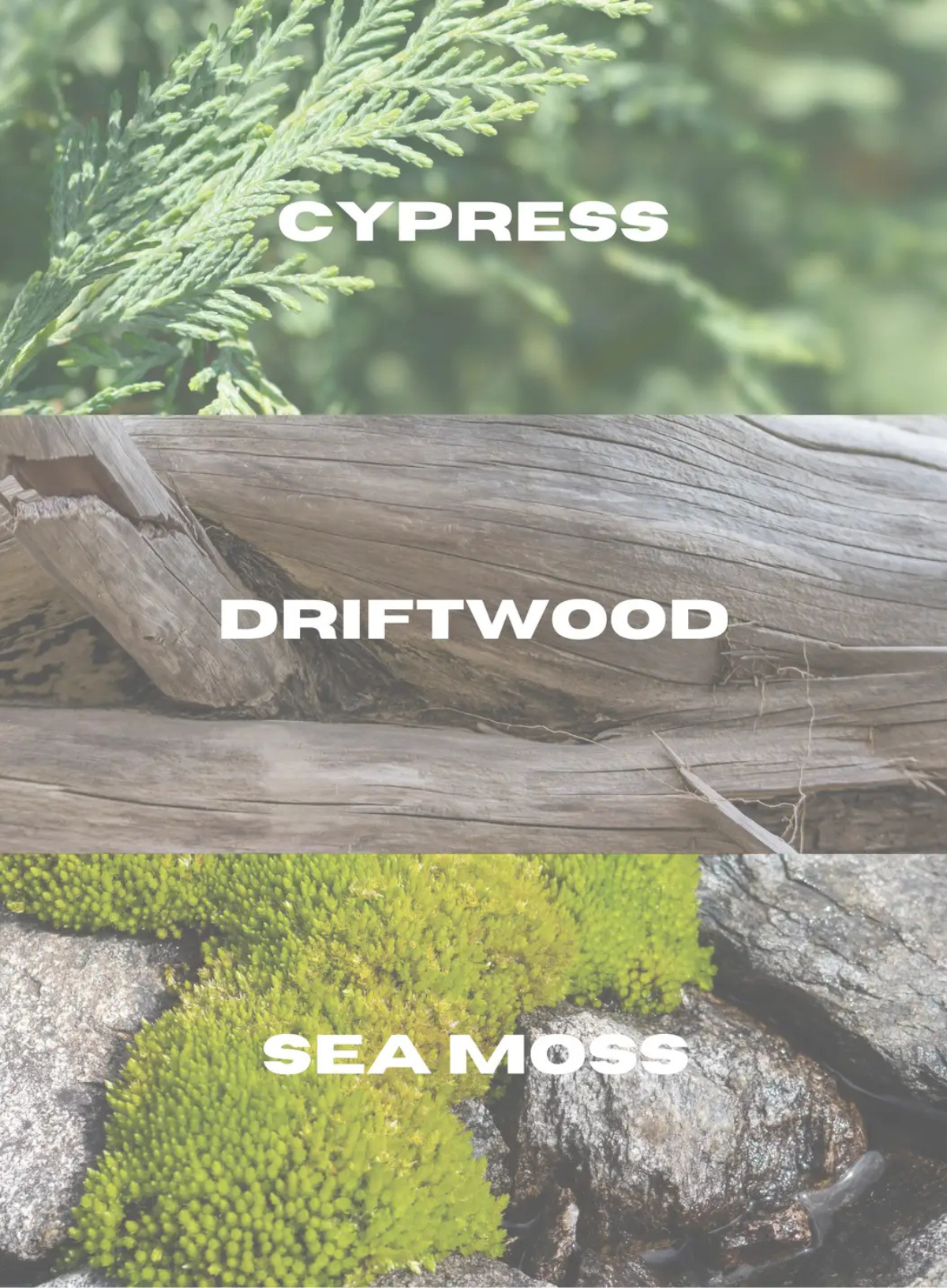 Notes of: Cypress, Driftwood, Sea Moss & Musks.