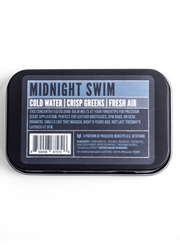 Inspired by the pure refreshment of a moonlit cannonball into the dark blue water of a remote forest lake, Midnight Swim offers a sophisticated blend of cold water, fresh air, and crisp green notes for a modern, slightly alluring, scent, perfect for a night not soon forgotten.