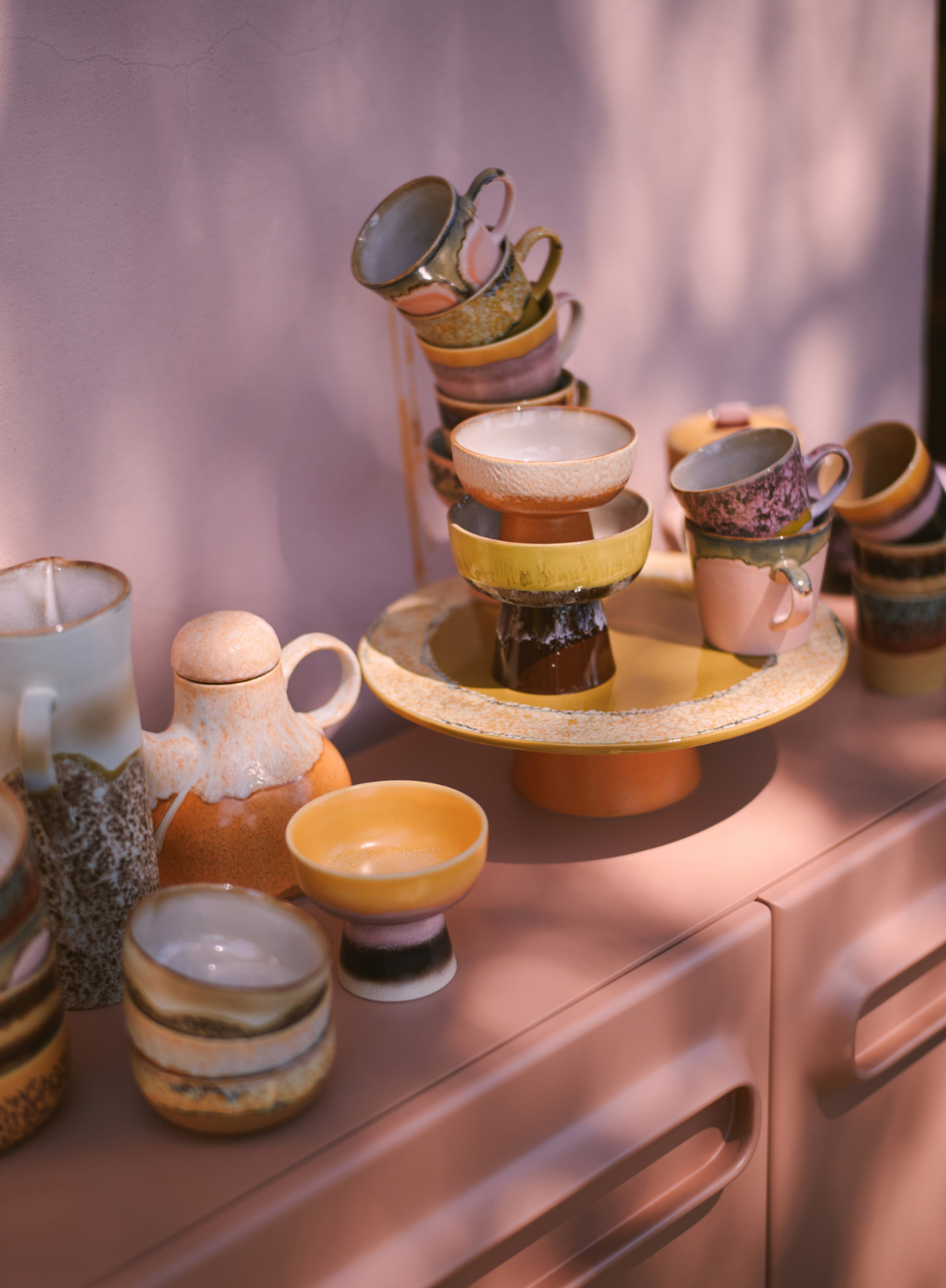 The 70s ceramic may be inspired by the exciting 70s - this time the finish has a natural base and is reminiscent of raw coastlines. Combining iconic shapes with fresh additions, the collection will appeal to those who appreciate raw simplicity.