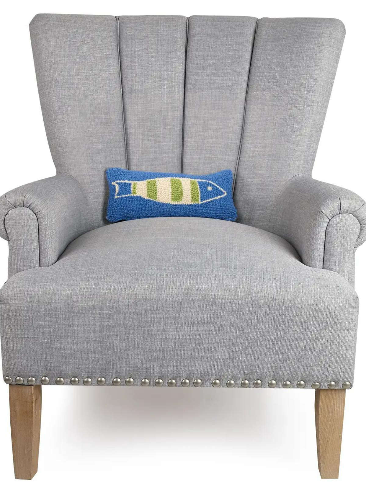 Blue & Green Picket Fish Hook Cushion from Peking Handicraft