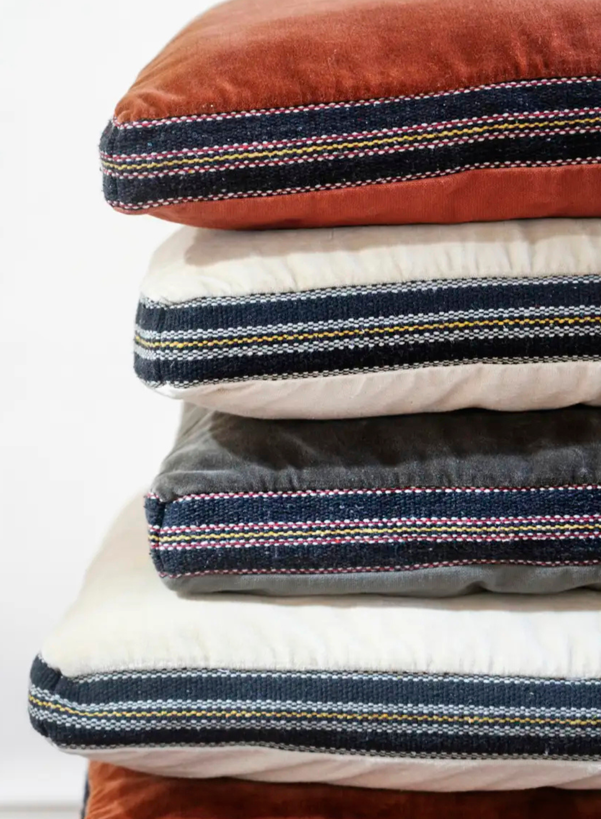 It is versatile, suitable for a chair or directly on the terrace deck. One side features soft velour, while the other side has robust woven cotton in a matching colour.