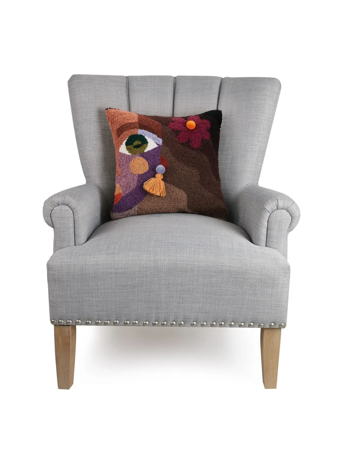 The Ella Flower cushion from Peking Handicraft features charming pom poms and a tassel detailed hook, adding a playful yet elegant touch to your living space.
