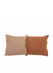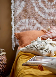 The Hanni Cushion by Creative Collection is a nice and unique cushion in a beautiful and warm color combination of soft colors. The quality is different at each color and the fringes are just perfect for your favorite cozy corner. This rectangular cushion will stand out from the rest of your cushions.