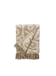 This reversible throw, crafted in India from 100% recycled cotton, showcases a floral pattern inspired by 1950s graphic designs.