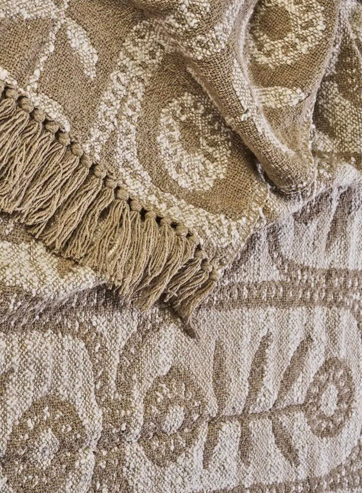 Handwoven by artisans, its taupe and off-white colours suit any decor, embodying sustainable elegance.