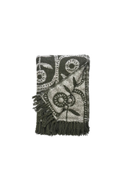 Handwoven by Indian artisans, it features a timeless dark green and off-white palette.