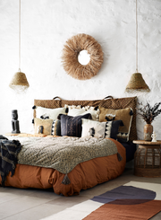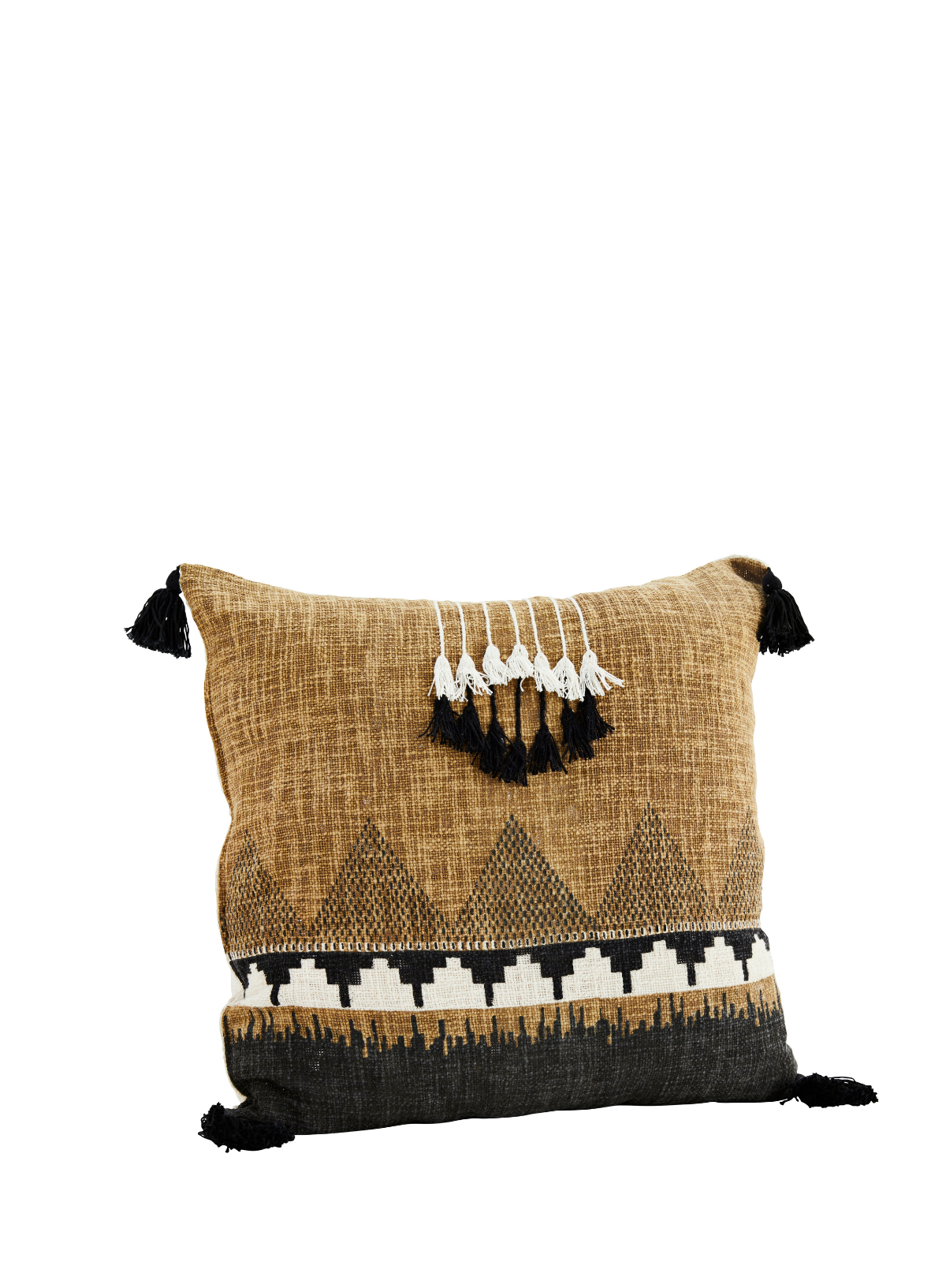 Native Printed Cushion With Tassels Tapernade & Black from Madam Stoltz