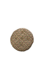 This round cotton chair pad adds comfort and a splash of colour to various seating arrangements. Made in India, it showcases a vibrant mix of olive, sand, old rose, and mustard hues, drawing inspiration from traditional Indian block prints. Designed to fit most chairs, it is an adaptable choice for many settings. Perfect for garden use during sunny months, it enhances outdoor spaces with its lively design.