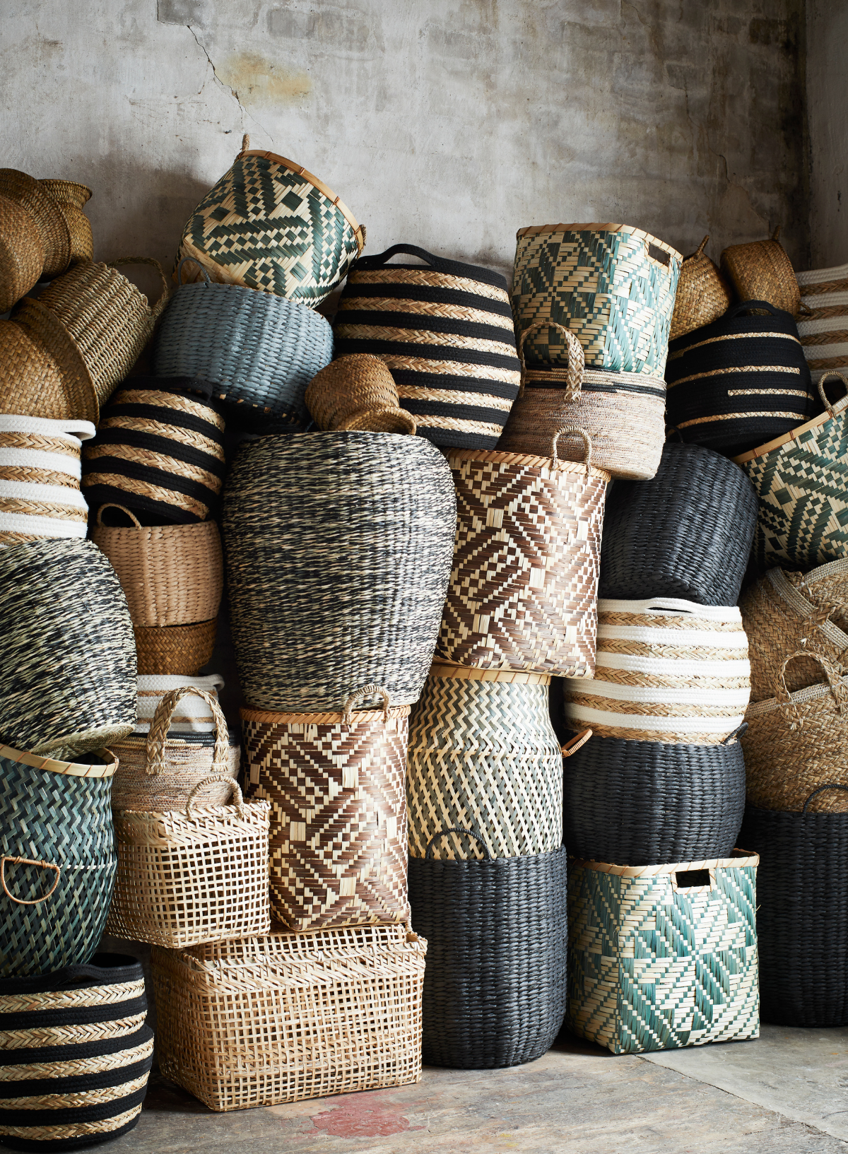 Large seagrass basket with handles in natural and black from Madam Stoltz