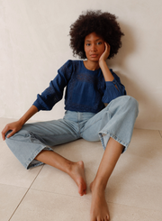 With its relaxed, loose fit and lace detailing on the shoulders, sleeves and waistband, this blouse will easily find its way into your wardrobe this season. The round neck, fitted shoulder and 100% organic cotton fabric make it one of those special basics we're so fond of.