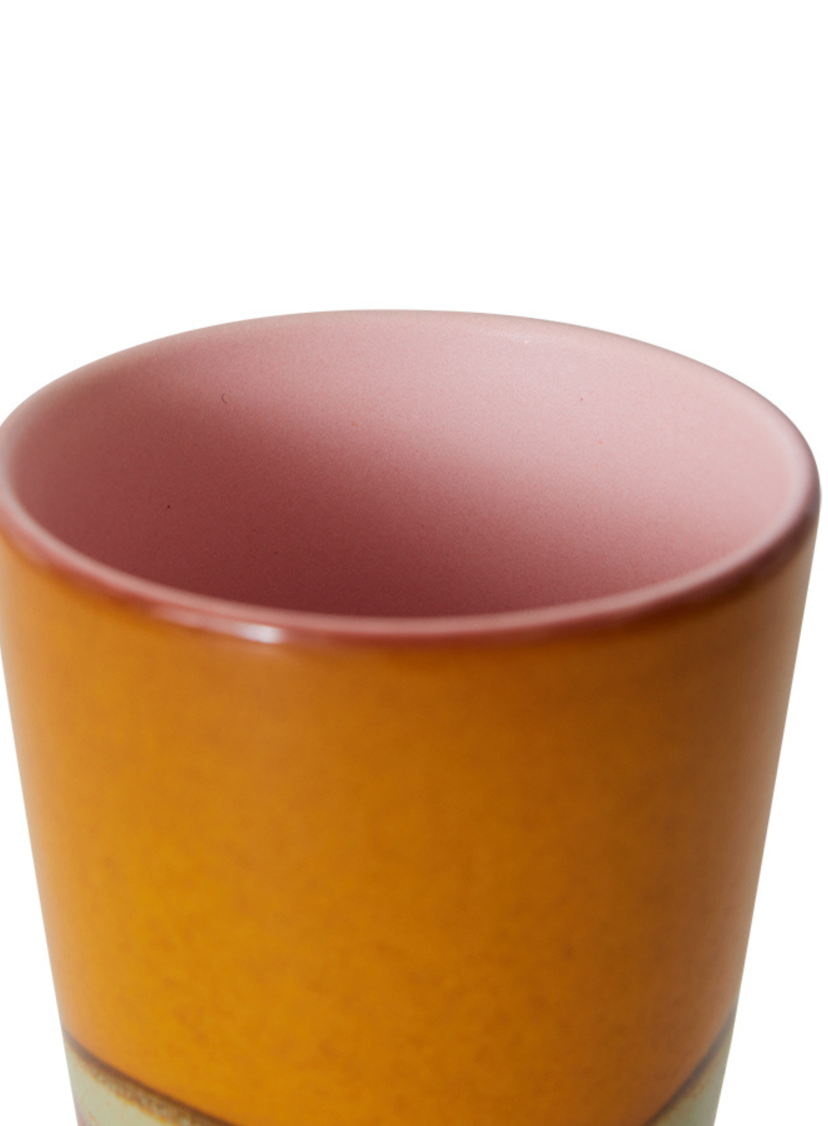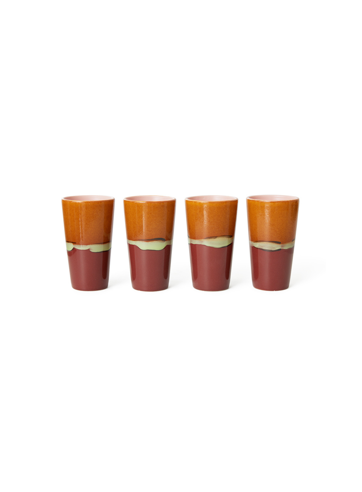 Latte macchiato lover? These latte mugs are for you. With a 300ml capacity, you'll serve the perfect latte. Thanks to the earthy elements and natural colours, this is the most relaxed range in the retro 70s ceramic collection. The exciting colour compositions and textured, hand-finished surfaces make each piece unique.