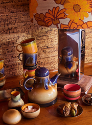Step back in time with their 70s Ceramics Coffee Collection, a vibrant tribute to coffee culture. Each piece in this collection - from the earth-toned mugs and saucers to the whimsical sugar and milk jugs and statement coffee pots - is crafted with a nod to the past, yet with modern craftsmanship that ensures durability. The rich, warm palette and groovy patterns create a visual feast that invites you to enjoy your coffee in true vintage style.