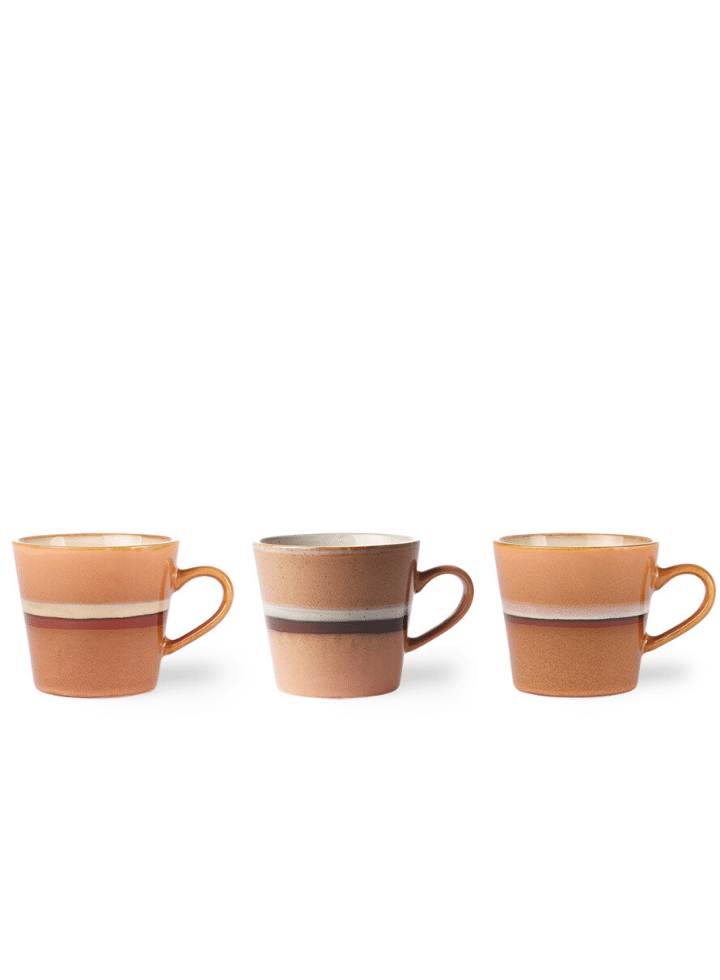 Our 70’s Style Cappuccino Mugs are the perfect size a cup of tea or coffee. With a collection to colours available and inspired by the great outdoors, these mugs will bring the adventure to you. Variants are Galaxy, Grass, Wave, Snow and Rock.