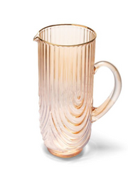 This rippled glass carafe with a golden amber luster stands out as a stylish and functional addition to your table.