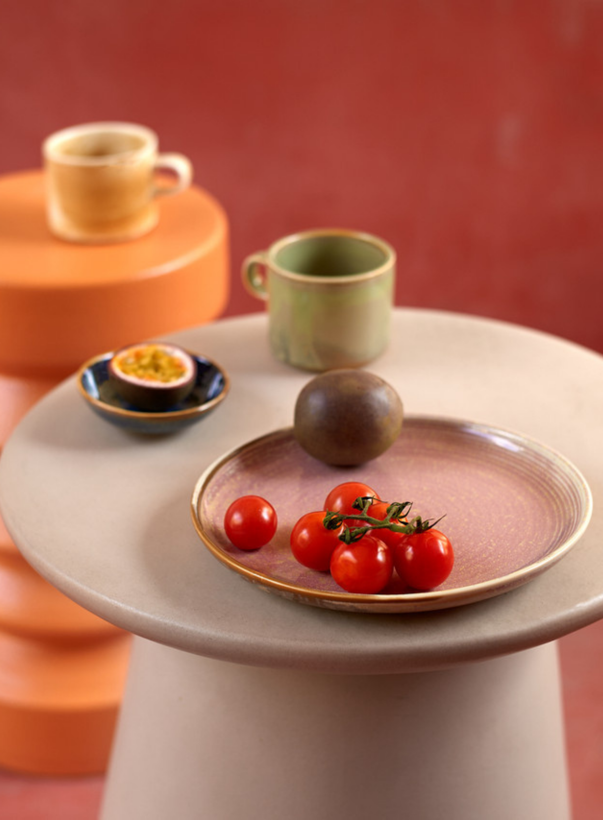 Each piece is unique with slightly different shades of colors and with different subtle pattern of matt and glossy finishing due to the reactive glaze. This undefined beauty is crafted through natural effects and spontaneous reactions which occur in.
