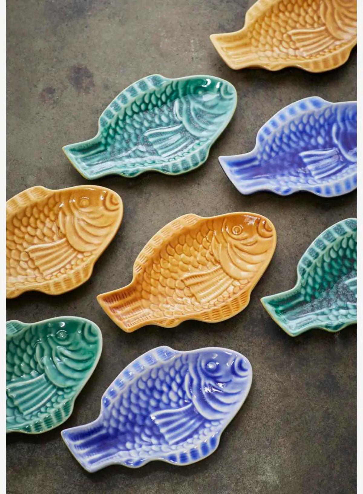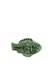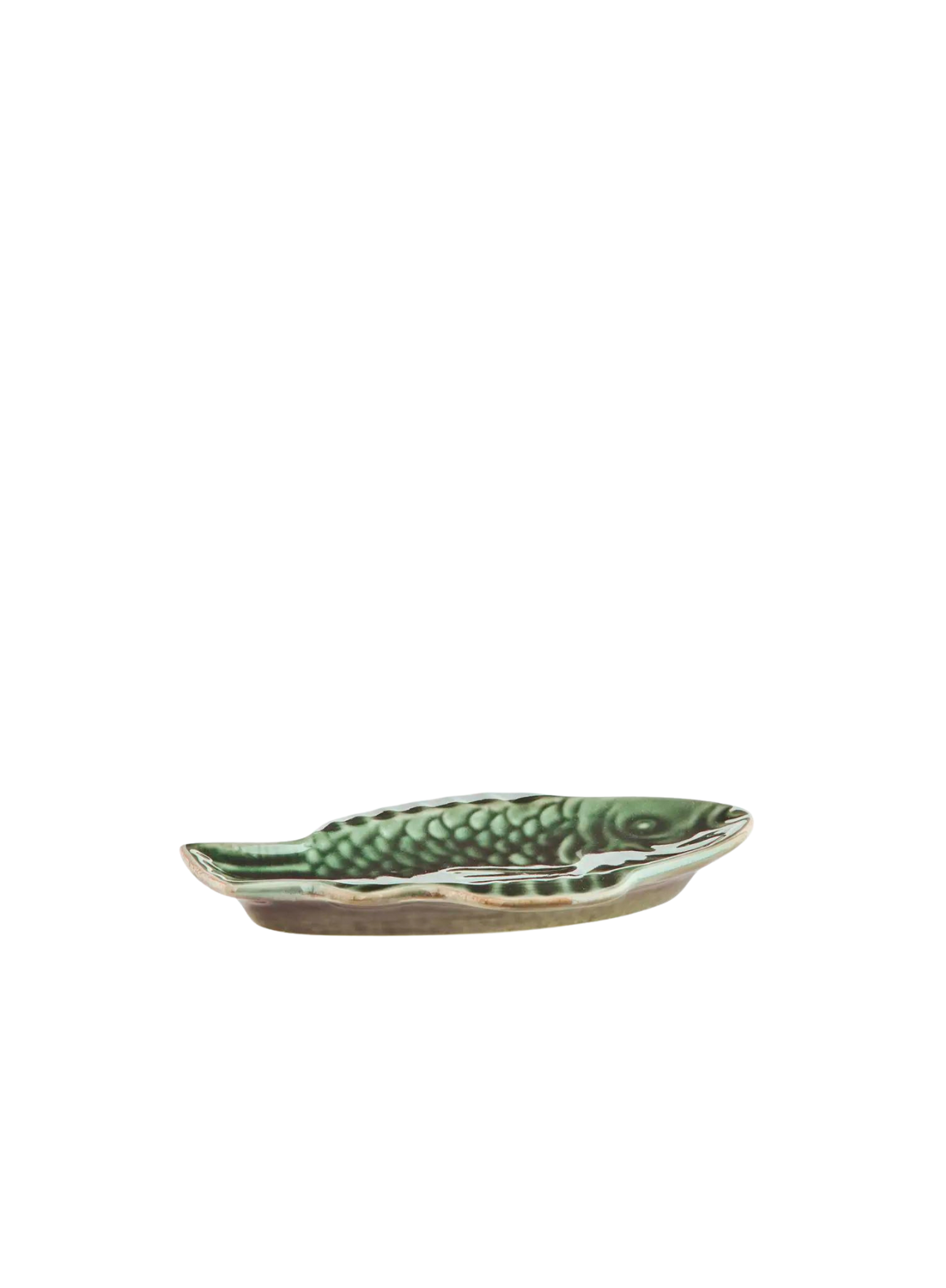 This stylish platter from Madam Stoltz features a unique fish shape in a beautiful dark green color. Perfect for serving appetisers, it adds a touch of charm and elegance to any table setting. Handcrafted with care, it is both functional and decorative.