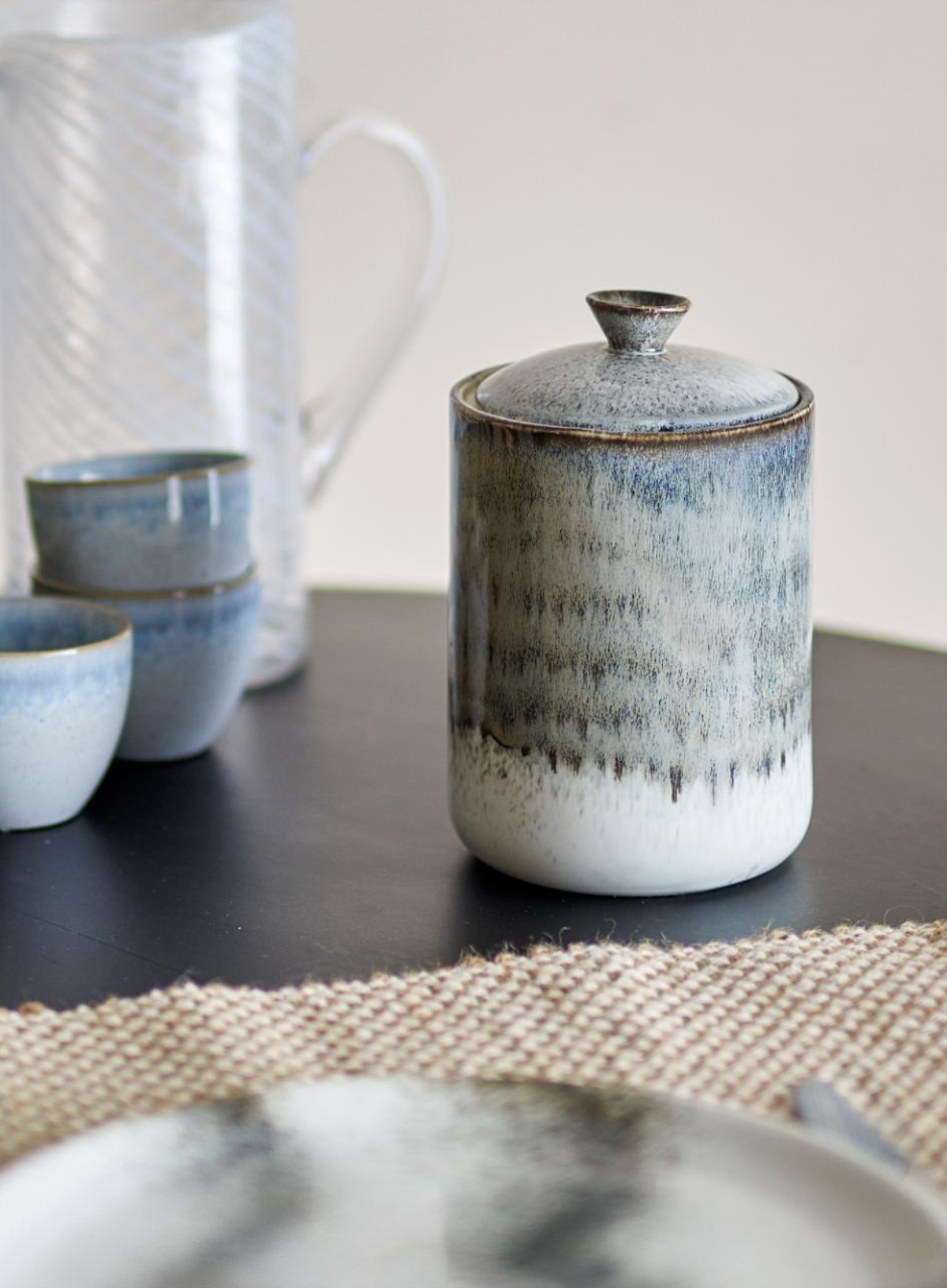 The Paula Jar by Bloomingville is made of stoneware with a unique glaze that creates a beautiful color play. Whether you use it for storing dry goods in the kitchen or as decoration in the living room, this jar is sure to impress. A silicone band is included for a soft closure.